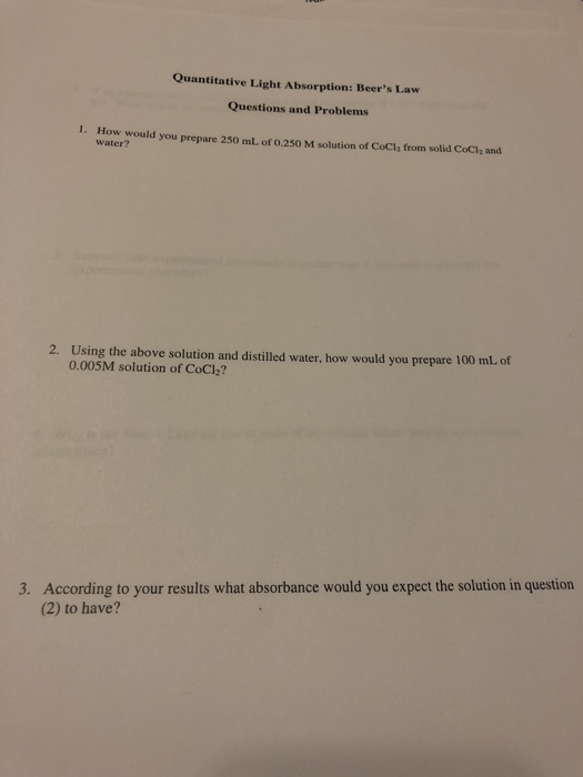 Solved Quantitative Light Absorption Beer S Law Question