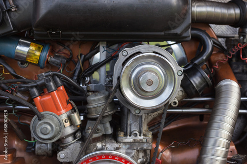 Engine And Parts Of Old Orange Color Volkswagen Beetle In South