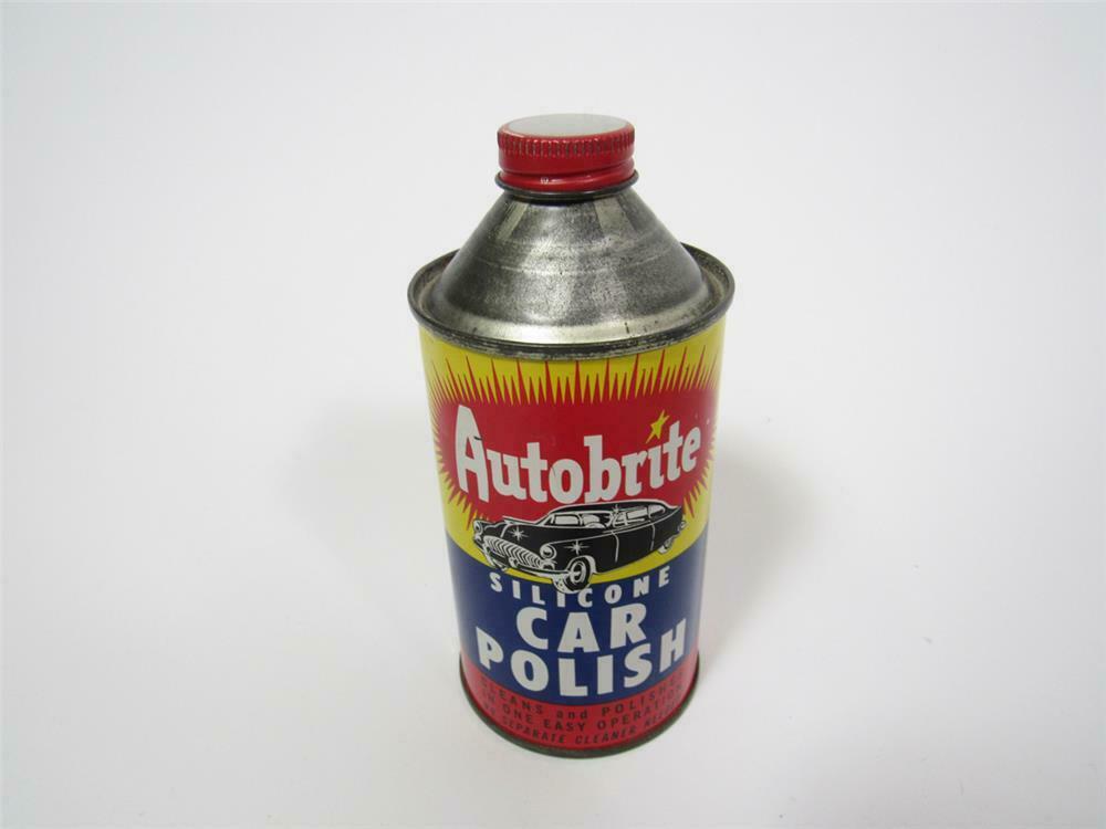 Nos 1950s Autobrite Silicone Car Polish 12 Ounce Cone Top Tin