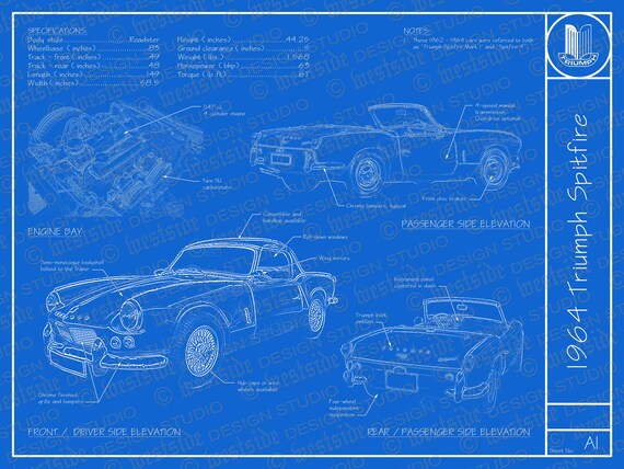 1964 Triumph Spitfire Blueprint Poster 18x24 Jpeg Etsy