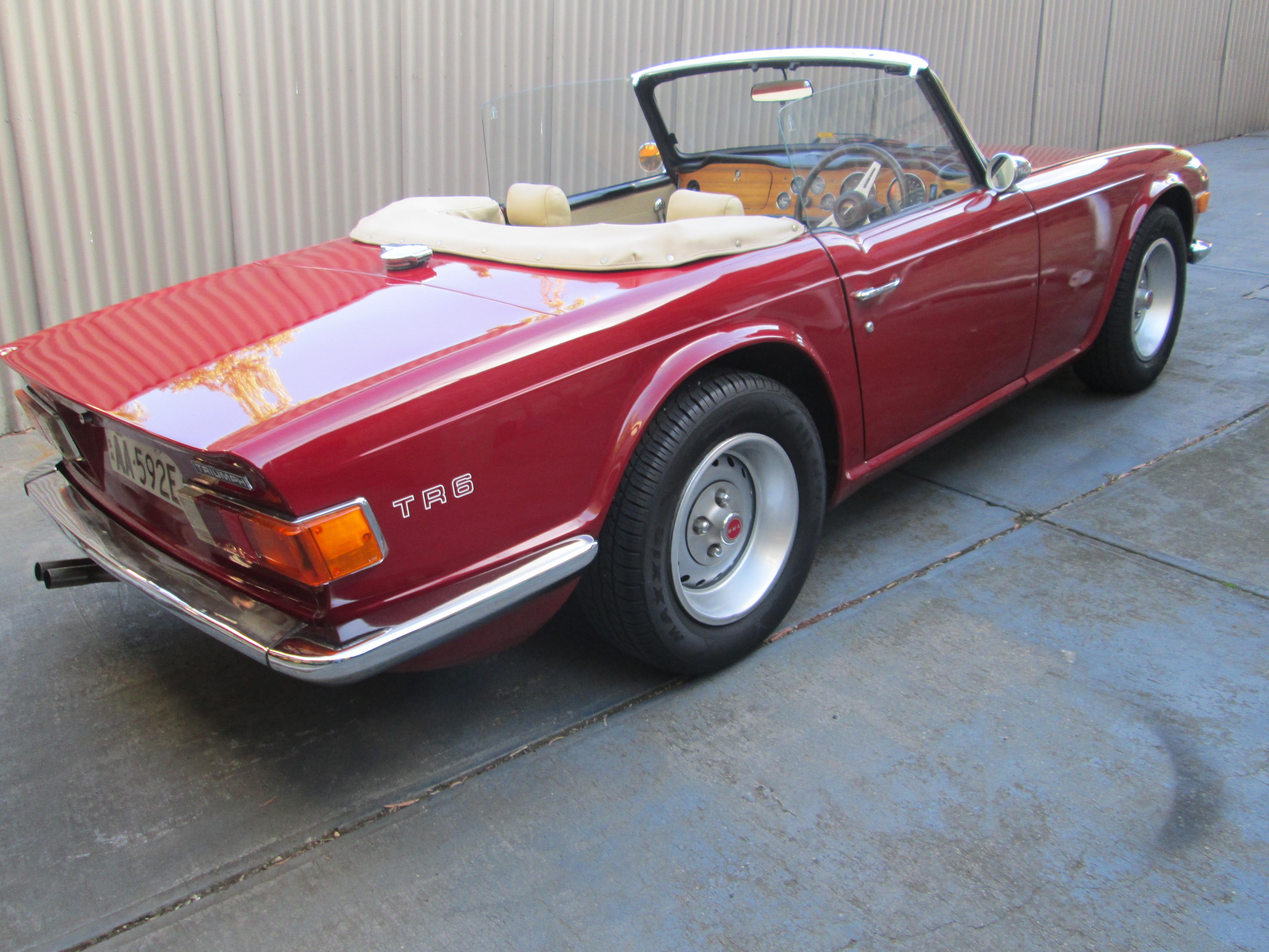 Description 1973 triumph tr6 the 1973 triumph tr6 is available in burgundy metallic with black interior and comes with a salvage title.