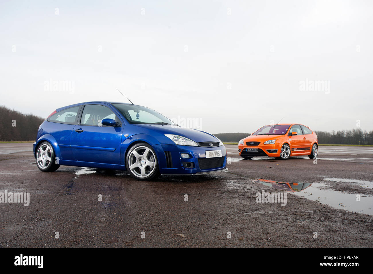 Blue Mk1 Ford Focus Rs And Orange Mk2 Focus St Stock Photo